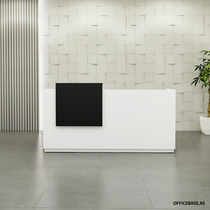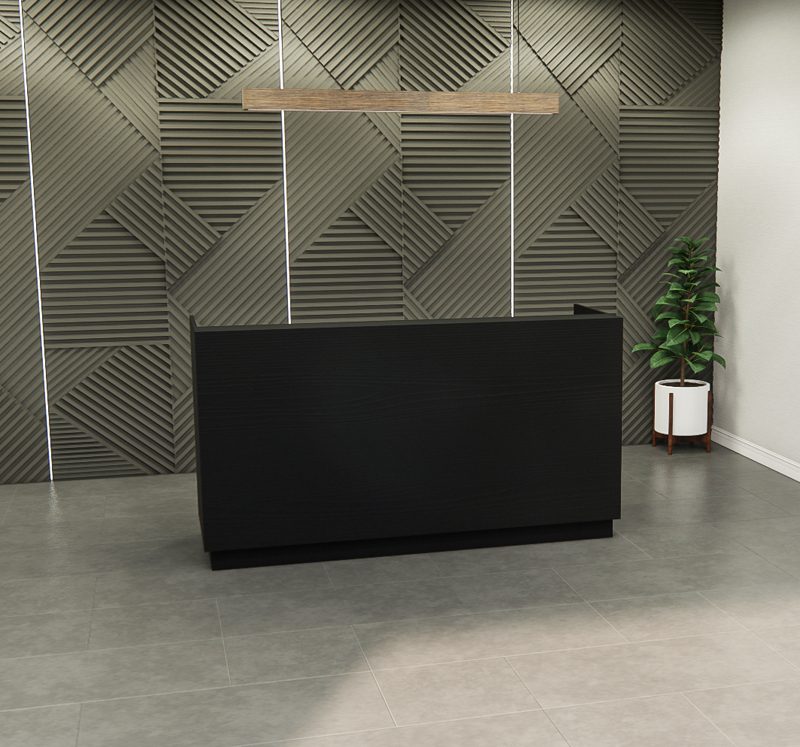 Reception Desk, where sleek design meets functional elegance. Its clean lines and minimalist aesthetic create a welcoming and organized space, perfect for first impressions in any office environment. The geometric backdrop enhances the desk’s understated beauty, making it a standout feature in both contemporary and sophisticated interiors. Whether it’s for greeting guests, conducting transactions, or providing a point of service